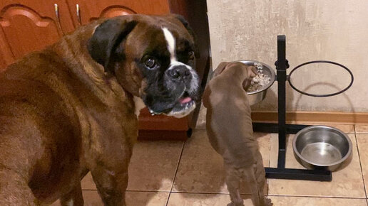 Боксёр Тайсон и Питбуль Джина Пищевая агрессия