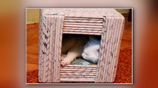 Домики для кошек из газетных трубочек своими руками