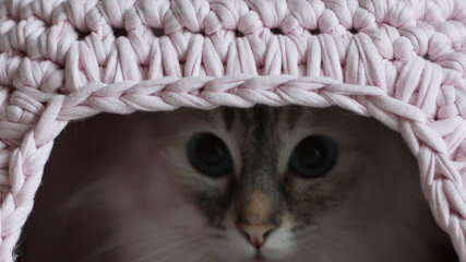 Котодомик крючком из трикотажной пряжи