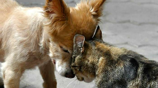 Необычная дружба кота и собаки..