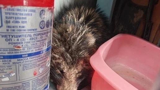 Полоскание енота в тазике. Помощь енотовидной собаке