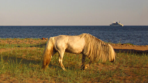 Про то, что в приполярных лесотундрах Кольского полуострова пасутся мустанги, как в каких-нибудь американских прериях, я узнал на борту теплохода Клавдия Еланская. Три раза в год он следует к отдалённым селениям Терского берега (Мурманская область), перевозя грузы и людей. Немногочисленные пассажиры от скуки накатывают, да между делом разговаривают за жизнь и травят байки. Ловля рыбы сапогами, наглые медведи, летающие по ветру кошки, съеденные припасы в тонЕ... и конечно различные невероятные выходки диких лошадей...