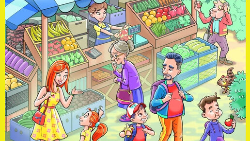 Где-то на яркой летней картинке спрятался очаровательный енот. Сможете отыскать его всего за 10 секунд? Картинки-головоломки не просто помогают определить уровень концентрации и внимания, но и являются отличным способом провести время с пользой. Готовы размять глаза? На очаровательном рисунке, представленном ниже, изображены люди и животные перед овощным прилавком. Милая старушка обдумывает покупку, сын и отец уходят от прилавка, купив банан, а мама с дочкой о чем-то беседуют...