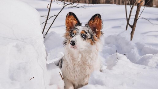 Эти яркие щенки корги кардиган полюбили зимние прогулки
