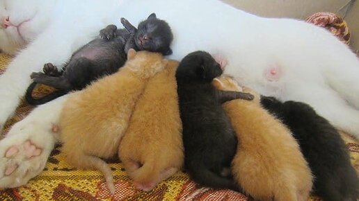 1. Даже белая кошка может принести таких разных котят. Интересно какого цвета у них папа?