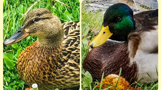 Все мы с детства умеем различать утку-самку от селезня-самца: утка серо-коричневая и невзрачная, а селезень - яркий, нарядный, с красивой переливающейся зеленой шеей. А замечали ли Вы когда-нибудь, что они различаются не только цветом шеи и общим окрасом? Чем еще различаются самки от самцов? 🦆 Клювом У селезня клюв ярко-желтый, а у утки розовато-коричневый. Клюв у самца крупнее, чем у самки. У селезня в верхней части клюва есть нарост, которого нет у самок. 🦆Шеей На шее у селезней есть белое кольцо...