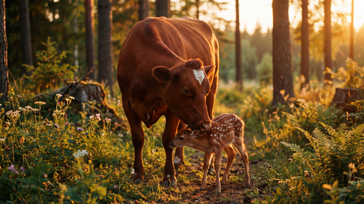 Корова теряла молоко и уходила в лес. Фермер увидел – кого она кормит