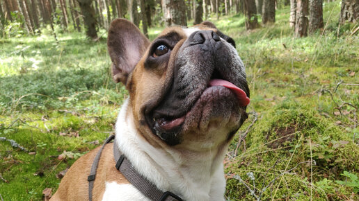 Французский бульдог отправился в лес собирать ягоды 🤔.