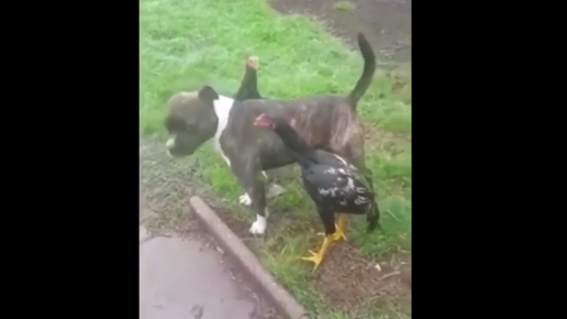 Хозяин спокойно гулял со своим питомцем, но вдруг впереди они увидели парочку дерущихся петухов. Питбуль, не задумываясь ни на секунду, бросился разнимать буянов...