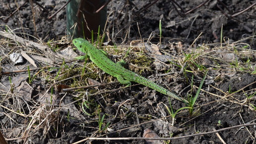 Уже весна. И с нетерпением предвкушаю встречу не только с любимыми растениями, но и с этими постоянными жителями нашего участка. Вот они, замечательные рептилии! Как только оттаивает почва, выбираются из зимних укрытий и греются на солнышке. Насколько я понимаю, обитающие у нас животные - это представители ящерицы прыткой, вполне обычного вида на территории Западной Сибири. В начале весны и самцы, и самочки - коричневые. Чуть позже самцы начинают постепенно окрашиваться и приобретают роскошный зеленый цвет - брачную окраску...