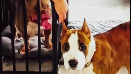 Американский булли Лейла знакомится с "арахисом". Короткий ролик о большой пользе