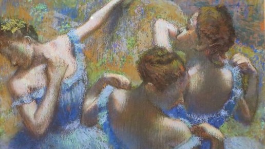 «Люди называют меня живописцем танцовщиц. Но им не приходит в голову, что мой интерес к танцовщицам продиктован интересом к движению и красивой одежде». Эдгар Дега. Эдгар Дега писал танцовщиц бесконечно много. На сцене Парижской оперы. В гримёрных. На изнурительных репетициях. Он изображал их в момент триумфа. Уставшими и зевающими. Делающими растяжку. Поправляющими пуанты. Картина «Голубые танцовщицы» (1897) похожа на главный аккорд во всей этой веренице работ. Она прекрасна. Как будто все остальные работы были лишь этюдами перед созданием этого шедевра...