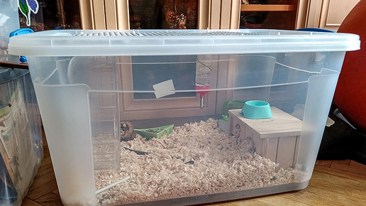 Хомячьи клетки есть. И много. Но по доступной цене они настолько маленькие, что хомяку просто будет не развернуться. А клетки нормальных размеров стоят как ипотека в Москве. Поэтому было принято решение сделать местожительство хомяку если не по последнему писку моды, то уж точно комфортное и закрывающее базовые потребности в хомячьей физкультуре. Поехали. На любом маркетплейсе покупаем пластиковый контейнер разумного размера – чтобы и хомяк мог носиться и не занимало половину комнаты. Но контейнер продается без нужной вентиляции...