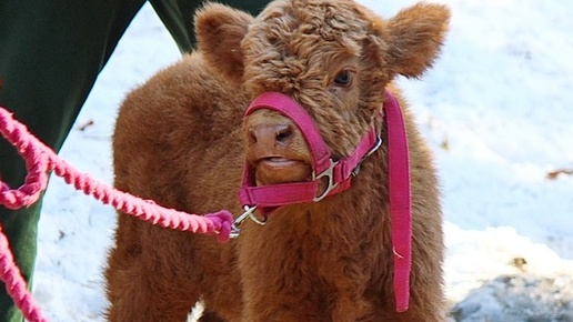 У шотландской коровки хайлендов родился телёнок и он бежит на встречу с мамой