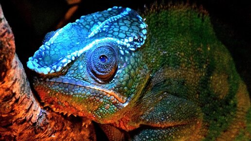 В 2018 году немецкие ученые поведали миру, что увидели нечто очень странное, когда посветили на хамелеона лампой «черного света» (лампа Вуда). На голове у ящерицы обнаружился ряд мерцающих голубых пятен, источник которых был определен не сразу. Тем не менее, вскоре исследователи поняли, что эти точки представляют собой крошечные косточки на черепе – они флуоресцировали и просвечивали сквозь кожу. О том, что под воздействием ультрафиолета светятся все кости, в том числе человеческие, известно уже более полувека...