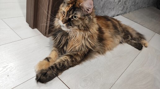 Характер мейн-куна. Здесь 50/50, хотя скорее 70/30. Вероятность того, что ваш мейн-кун будет ласковым плюшевым котиком гораздо ниже, чем вероятность получить дерзкого надменного красавца! В большинстве своем куны далеко не мимимишные, не будут лежать на ручках и ласково урчать. Когда, его Величество изволит, он придет и ляжет рядом, получит свою порцию ласки и уйдет) Именно такой у нас Рафаэль. Не смотря на это, они очень социальные. Собственно это и была причина, по которой мы взяли еще одного котенка...