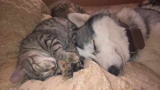 Как подружить хаски с котенком. Часть 1 #хаски #собакадругчеловека #Собаки #котенок