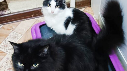 Редкий случай, эту кошку вырастили хаски, теперь она считает себя собакой