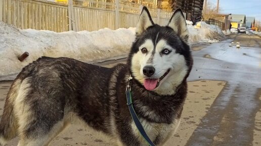 Хаски в деревне . Прогулка .
