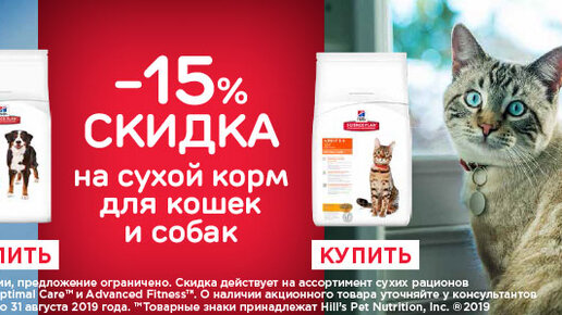 -10% -15% на корма Hills в августе