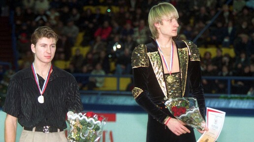 Начало великой дуэли. Дуэль Алексея Ягудина и Евгения Плющенко — одно из лучших, что случалось с фигурным катанием за всю его историю. Началось их соперничество еще до юниорских баталий, когда 11-летний Евгений только-только переступил порог «Юбилейного». Ягудину же в тот момент было 14, три года разницы в подростковом возрасте — пропасть. В то время Алексей Мишин уделял в первую очередь внимание Алексею Урманову и Олегу Татаурову, следующим в этой «очереди» шел Ягудин. Плющенко же Мишин говорил «смотреть, как делают старшие, и тоже стараться»...
