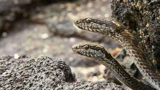 На протяжении всего видео Аттенборо называет их просто "полоза" ("racer snakes"), но герпетологи, обычно, называют этих змей галапагосскими полозами. Но, хоть они и называются полозами, они не тесно связаны с североамериканскими полозами рода Coluber; около 45 млн лет назад эти змеи разошлись друг от друга от общего предка...