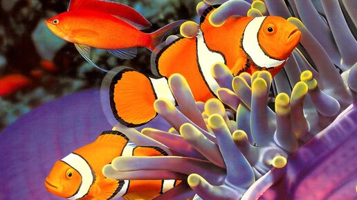Рыбы-клоуны обитают на дне моря.Это маленькие рыбки, которые живут среди анемонов. Анемоны-это рыбоядные животные, которые выглядят как подводные цветы и имеют сотни ядовитых щупалец. Обычно щупальца анемона убивают других рыб, которые прикасаются к ним, но ученые считают, что рыба-клоун может быть покрыта слизистой, которая защищает ее от яда. Эти рыбы-клоуны ярко-оранжевого цвета с тремя характерными белыми полосами. Рыбы-клоуны достигают около 4,3 дюйма в длину - около двенадцатилетней ладони...