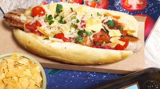Очень вкусный хот-дог и при этом простой в приготовлении. Колбаски на гриле и помидоры черри, жаренные с медом и паприкой. Еще будет самый известный испанский сыр - манчего, чипсы с барбекю и свежая петрушка. булочки для хот-догов - 3 шт.