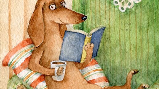 В тени сидели двое – маленькая девочка и собачка. Прямо перед ними стояла большая раскрытая книга, прислонённая к невысокому кустику...