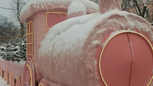 В этом году на Тверском бульваре розовый паровозик и множество розовых меховых грибков...