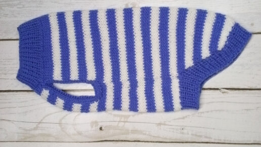 Жилет для кота ( описание от А до Я) Понадобятся: Пряжа Детская новинка или другая похожая, меньше 50г каждого цвета. Спицы номер 2,5 и 3,0 носочные гибкие или чулочные ( как удобней). Крючок 3,0. Маркеры, булавочка для снятия петель или доп. Нить. Счётчик рядов (желательно). Шаг 1. На спицы 2,5 синим цветом набрать 60п. Замкнуть в круг и вязать резинкой 1×1 10р. Перейти на спицы 3,0 и провязать ещё 2 ряда лиц. гладью. Всего 12р. С 13 ряда отделить 10 петель и вязать их до 41 ряда лиц. и изн. рядами меняя цвет каждые 4 ряда...