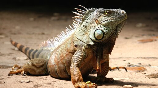 Игуана является довольно таки большой ящерицей, длина ее тела составляет в среднем 2 метра, при весе от 5 до 9 кг. Хотя встречаются и более мелкие представители, например, голубая колючая игуана имеет длину тела всего лишь 30 см. Как и другие ящерицы, все игуаны имеют покрытую чешуей кожу. Сами чешуйки в зависимости от вида игуаны могут иметь различные размеры и окрас. К слову об окрасе, подобно своим родственникам хамелеонам игуаны могут менять свой цвет, правда делают это не столь легко и непринужденно как хамелеоны...