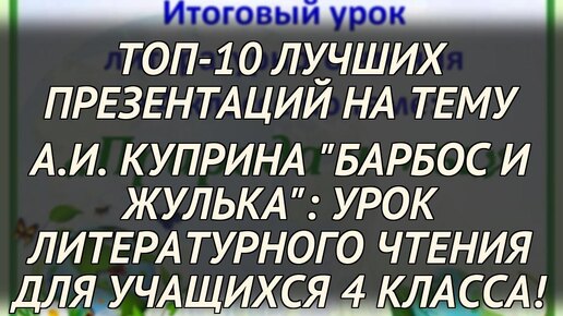 ТОП-10 лучших презентаций на тему А.И. Куприна "Барбос и Жулька": Урок литературного чтения для учащихся 4 класса