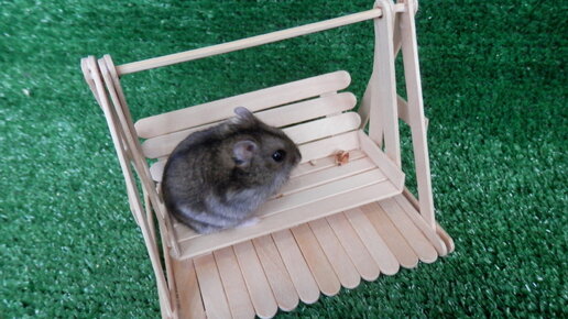 Как сделать садовые качели из палочек от мороженого В этом видео я изготовил для хомяка садовые качели. Качели я изготовлял из палочек от мороженого. Нашему хомяку они пришлись по вкусу. Думаю что такое развлечения для хомяка будет для вас интересным...