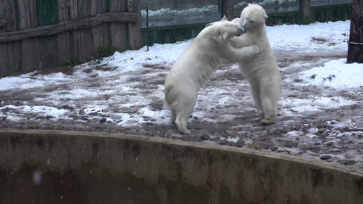 В Новосибирске белые медведицы Белка и Стрелка поссорились и устроили потасовку на глазах у посетителей зоопарка. Драку косолапых удалось снять постоянному посетителю зоопарка Сергею Ильтякову, видео он опубликовал на своей личной странице в социальной сети. На кадрах видно, как одна из любимиц публики попыталась достать из бассейна красную игрушку, но плавающей сестрице это не понравилось. Она вышла на сушу за возжелавшей игрушку медведицей и устроила бой на задних лапах. Сбегая от зачинщицы, одна из сестер спрыгнула в бассейн, однако вторая тут же прыгнула за ней...