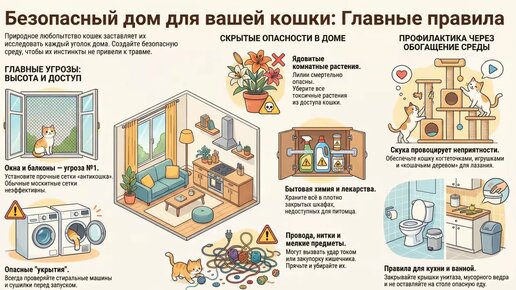 Переезд кошки в новый дом - радостное событие, но для животного это знакомство с совершенно новым миром, полным не только интересных запахов и укромных уголков, но и потенциальных опасностей. В отличие от собак, кошки обладают уникальным набором поведенческих особенностей: они исследуют вертикальное пространство, могут проникать в узкие щели и часто пробуют на зуб незнакомые предметы. Задача ответственного владельца - предвидеть эти риски и создать среду, в которой любопытство питомца не приведет к травме или отравлению...