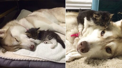 Считается, что кошки не ладят с собаками. Однако жизнь полна сюрпризов. Представляем вашему вниманию историю хаски Ивы и котенка Алисы. Молодая пара с собакой хаски прогуливалась по городу. Неожиданно питомец сорвался с поводка и забрался под скамейку. Ива обнаружила там маленький грязный комочек. Так кошечка Алиса обрела своих новых хозяев. Семья, которая приютила Алису, сначала не верила, что животное выживет. Ее отнесли на прием к ветеринару, и тот сообщил, что трехнедельный брошенный котенок, скорее всего, уже не окрепнет...