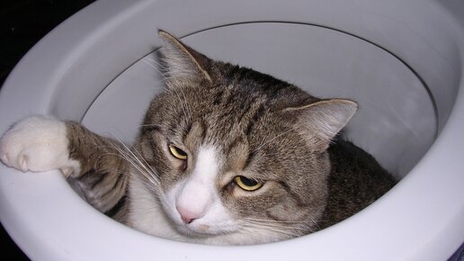 4. Быстрым движением поместите кошку в унитаз, закройте крышкой и