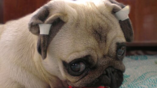 Когда Кекс был маленький, мы и знать не знали, что мопсам клеят уши. В интернете такую информацию можно было встретить только на специализированных форумах, а заводчик может и говорила нам, но мы благополучно прослушали Это когда мы уже выросли, то узнали что у мопса должны быть уши формой «пуговка», что в 3-4 месяца у щенков со сменой зубов начинает «ломаться» ушной хрящ и что...