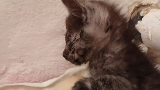 Помните найденного котенка? Он полз, не видя ничего вокруг. Вся мордочка была залеплена гноем. Я не могла бросить его в беде, пришлось принести домой. Если честно, было опасение, что малыш не выживет. Он просто лежал, уткнувшись носиком в лежанку...