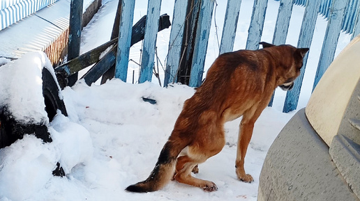 Пёсик полз по снегу на передних лапах. Задние его совершенно не слушались.