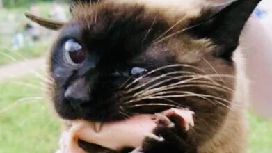 Когда кошка хватает достаточно большой кусок мяса зубами и практически сразу же целиком его проглатывает, то это порой вызывает у хозяина удивление и даже опасение. Ну всё-таки кошка это не питон, который целиком запихивает себе жертву в рот. Да, мурлыка не может жевать, как это делает, допустим, человек. У кошки имеется своя специфика измельчения пищи перед тем как ее проглотить. Природой устроено так, что свою жертву маленький хищник умерщвляет при помощи острых и длинных передних клыков. А вот далее мясо рвется/режется задними жевательными зубами на мелкие кусочки...
