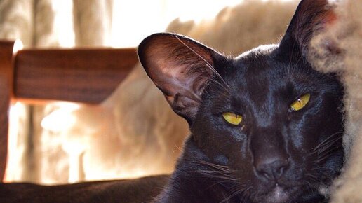 Ориенталы - это необычная порода кошек с примечательным внешним видом. У них большие оттопыренные ушки, короткая шерсть, выразительные глаза и длинный острый носик.