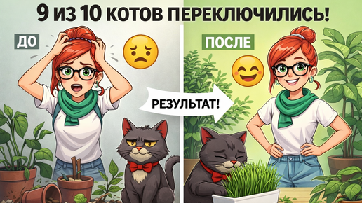 Простой способ отучить кота есть растения. Пошаговая инструкция выращивания кошачьей травы дома ✅ Каждое утро находила обглоданные стебли вместо красивых растений — Фил превратил подоконник в свой личный салат-бар. Думала, придется выбирать между цветами и котом, пока не узнала, как отучить кота есть цветы простым способом за копейки. Встаю утром, иду на кухню — кофе же нужен срочно. А там сидит мой Фил в своей красной бабочке. Важно так сидит на подоконнике и... жует. Жует мою любимую фиалку! Причем со звуком — хруст, хруст...