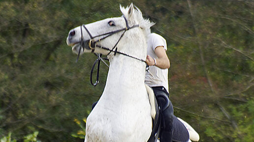 Наверняка каждый коневладелец после покупки лошади столкнулся с каким-либо "сюрпризом" либо в поведении, либо по здоровью лошади, о котором умолчали прежние хозяева. У моей кобылы со здоровьем, слава Богу, всё хорошо. Оно оказалось отменным. А вот с поведением и характером не всё так гладко. Кобыла оказалась характерной и очень пугливой. Позднее выяснилось, что была даже сбита машиной при бегстве со страха по городу. В связи с отсутствием манежа вся работа верхом проходит в полях. Вот тут то в первое лето после приобретения лошади я прочувствовала все прелести лошадинного страха...
