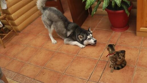 Как подружить хаски с котенком. Часть 1 #хаски #собакадругчеловека #Собаки #котенок