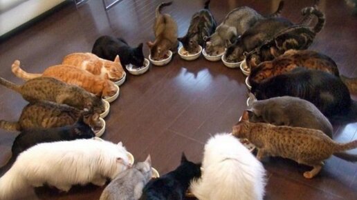 Как правильно кормить несколько кошек?