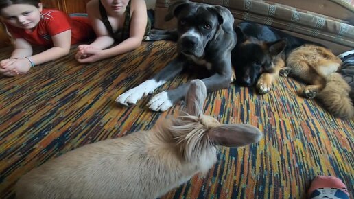 Собаки и кролик. Как приучить? Первое знакомство.