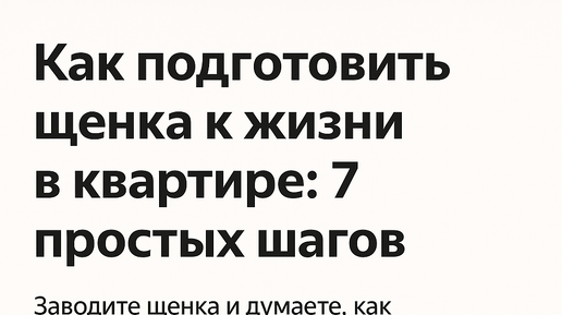 Как подготовить щенка к жизни в квартире: 7 простых шагов