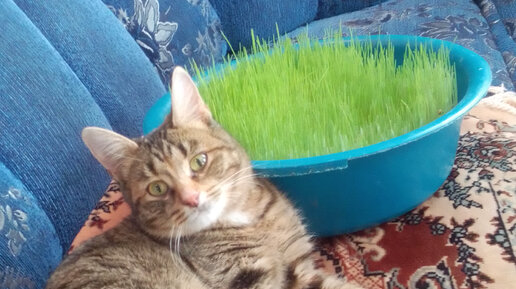 Или кусочек лета для кошки Маркизы и курочек Кошки любят сочную траву. И Маркиза не исключение. А за неимением зелени злаковых в ход идут и ценные экземпляры комнатных растений. Например, старательно выращенная мною за лето ветка Аспарагуса серповидного (Asparagus falcatus), была подточена как берёза маленьким бобром. И тут я поняла, что пора сеять! Сначала попробовала по старинке посеять пшеницу - в горшочке с землёй. Конечно, пшеничка медленно, но выросла. Но, во-первых, этот горшочек приходится постоянно поливать...